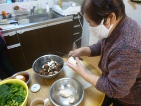 自宅ではなかなか難しい、包丁を使った料理や、洗濯干し・たたみ、家事、お掃除など、日常生活全てを全身のリハビリに繋げています。全ては生活から「楽しく♪」がモットーです。
